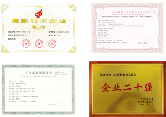 省泰山產(chǎn)業(yè)領(lǐng)軍人才企業(yè)、高新技術(shù)企業(yè)、省科技型中小企業(yè)、 特種設(shè)備制造許可企業(yè)、工信部目錄內(nèi)專用車生產(chǎn)企業(yè)